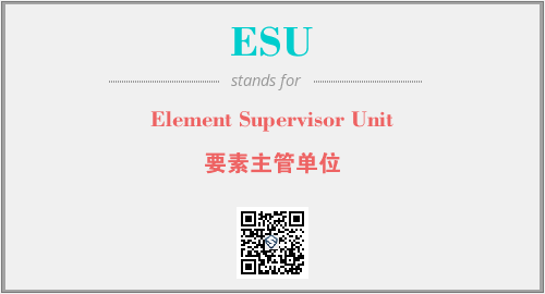 上述内容是“Element Supervisor Unit”作为“ESU”的缩写,解释为“要素主管单位”时的信息,以及英文缩略词ESU所代表的英文单词,其对应的中文拼音、详细解释以及在英文中的流行度和相关分类、应用领域及应用示例等。
