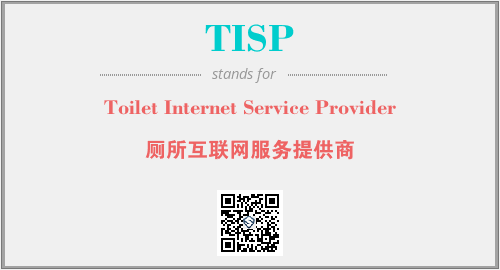 英文缩略词“TISP”经常作为“Toilet Internet Service Provider”的英文缩写来使用,中文表示:“厕所互联网服务提供商”。本文将详细介绍英文缩写词TISP所代表英文单词,其对应的中文拼音、详细解释以及在英语中的流行度。此外,还有关于缩略词TISP的分类、应用领域及相关应用示例等。