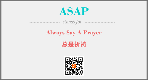 英文缩略词“ASAP”经常作为“Always Say A Prayer”的英文缩写来使用,中文表示:“总是祈祷”。本文将详细介绍英文缩写词ASAP所代表英文单词,其对应的中文拼音、详细解释以及在英语中的流行度。此外,还有关于缩略词ASAP的分类、应用领域及相关应用示例等。
