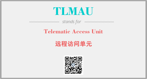 英文缩略词“TLMAU”经常作为“Telematic Access Unit”的英文缩写来使用,中文表示:“远程访问单元”。本文将详细介绍英文缩写词TLMAU所代表英文单词,其对应的中文拼音、详细解释以及在英语中的流行度。此外,还有关于缩略词TLMAU的分类、应用领域及相关应用示例等。