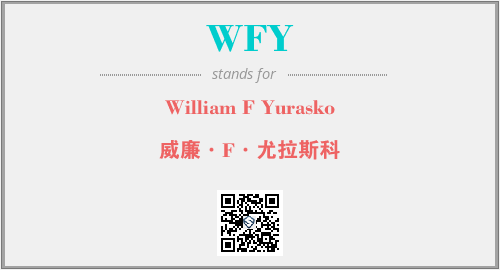 上述内容是“William F Yurasko”作为“WFY”的缩写,解释为“威廉·F·尤拉斯科”时的信息,以及英文缩略词WFY所代表的英文单词,其对应的中文拼音、详细解释以及在英文中的流行度和相关分类、应用领域及应用示例等。