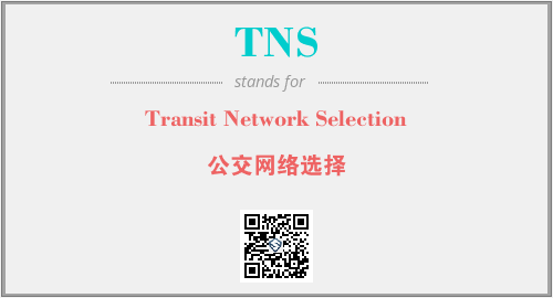 上述内容是“Transit Network Selection”作为“TNS”的缩写,解释为“公交网络选择”时的信息,以及英文缩略词TNS所代表的英文单词,其对应的中文拼音、详细解释以及在英文中的流行度和相关分类、应用领域及应用示例等。