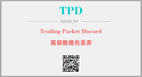 上述内容是“Trailing Packet Discard”作为“TPD”的缩写,解释为“尾部数据包丢弃”时的信息,以及英文缩略词TPD所代表的英文单词,其对应的中文拼音、详细解释以及在英文中的流行度和相关分类、应用领域及应用示例等。