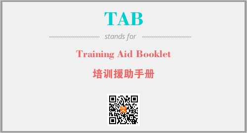 英文缩略词“TAB”经常作为“Training Aid Booklet”的英文缩写来使用,中文表示:“培训援助手册”。本文将详细介绍英文缩写词TAB所代表英文单词,其对应的中文拼音、详细解释以及在英语中的流行度。此外,还有关于缩略词TAB的分类、应用领域及相关应用示例等。