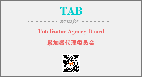 英文缩略词“TAB”经常作为“Totalizator Agency Board”的英文缩写来使用,中文表示:“累加器代理委员会”。本文将详细介绍英文缩写词TAB所代表英文单词,其对应的中文拼音、详细解释以及在英语中的流行度。此外,还有关于缩略词TAB的分类、应用领域及相关应用示例等。