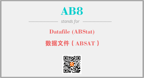 英文缩略词“AB8”经常作为“Datafile (ABStat)”的英文缩写来使用,中文表示:“数据文件(ABSAT)”。本文将详细介绍英文缩写词AB8所代表英文单词,其对应的中文拼音、详细解释以及在英语中的流行度。此外,还有关于缩略词AB8的分类、应用领域及相关应用示例等。