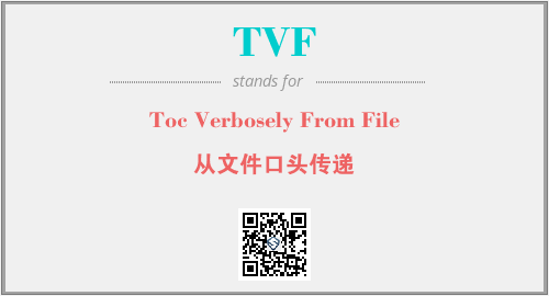 英文缩略词“TVF”经常作为“Toc Verbosely From File”的英文缩写来使用,中文表示:“从文件口头传递”。本文将详细介绍英文缩写词TVF所代表英文单词,其对应的中文拼音、详细解释以及在英语中的流行度。此外,还有关于缩略词TVF的分类、应用领域及相关应用示例等。