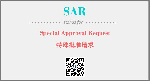 英文缩略词“SAR”经常作为“Special Approval Request”的英文缩写来使用,中文表示:“特殊批准请求”。本文将详细介绍英文缩写词SAR所代表英文单词,其对应的中文拼音、详细解释以及在英语中的流行度。此外,还有关于缩略词SAR的分类、应用领域及相关应用示例等。