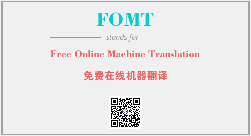 上述内容是“Free Online Machine Translation”作为“FOMT”的缩写,解释为“免费在线机器翻译”时的信息,以及英文缩略词FOMT所代表的英文单词,其对应的中文拼音、详细解释以及在英文中的流行度和相关分类、应用领域及应用示例等。
