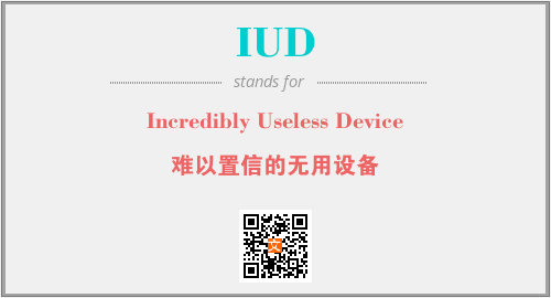 以上为Incredibly Useless Device英文缩略词IUD的中文解释,以及该英文缩写在英语的流行度、分类和应用领域方面的信息。