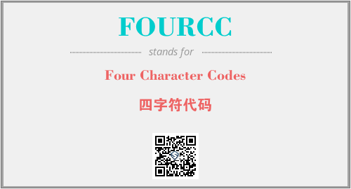 英文缩略词“FOURCC”经常作为“Four Character Codes”的英文缩写来使用,中文表示:“四字符代码”。本文将详细介绍英文缩写词FOURCC所代表英文单词,其对应的中文拼音、详细解释以及在英语中的流行度。此外,还有关于缩略词FOURCC的分类、应用领域及相关应用示例等。