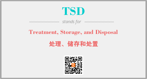 上述内容是“Treatment, Storage, and Disposal”作为“TSD”的缩写,解释为“处理、储存和处置”时的信息,以及英文缩略词TSD所代表的英文单词,其对应的中文拼音、详细解释以及在英文中的流行度和相关分类、应用领域及应用示例等。