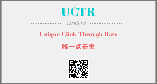 英文缩略词“UCTR”经常作为“Unique Click Through Rate”的英文缩写来使用,中文表示:“唯一点击率”。本文将详细介绍英文缩写词UCTR所代表英文单词,其对应的中文拼音、详细解释以及在英语中的流行度。此外,还有关于缩略词UCTR的分类、应用领域及相关应用示例等。