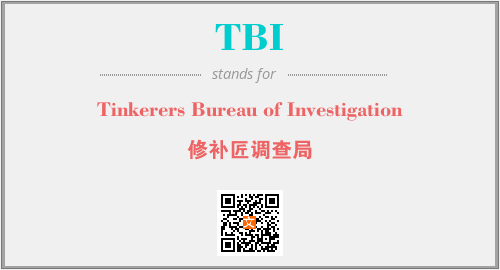 英文缩略词“TBI”经常作为“Tinkerers Bureau of Investigation”的英文缩写来使用,中文表示:“修补匠调查局”。本文将详细介绍英文缩写词TBI所代表英文单词,其对应的中文拼音、详细解释以及在英语中的流行度。此外,还有关于缩略词TBI的分类、应用领域及相关应用示例等。