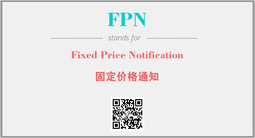 英文缩略词“FPN”经常作为“Fixed Price Notification”的英文缩写来使用,中文表示:“固定价格通知”。本文将详细介绍英文缩写词FPN所代表英文单词,其对应的中文拼音、详细解释以及在英语中的流行度。此外,还有关于缩略词FPN的分类、应用领域及相关应用示例等。