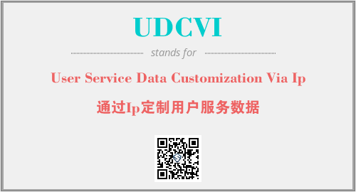 上述内容是“User Service Data Customization Via Ip”作为“UDCVI”的缩写,解释为“通过Ip定制用户服务数据”时的信息,以及英文缩略词UDCVI所代表的英文单词,其对应的中文拼音、详细解释以及在英文中的流行度和相关分类、应用领域及应用示例等。