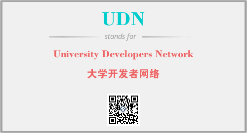 上述内容是“University Developers Network”作为“UDN”的缩写,解释为“大学开发者网络”时的信息,以及英文缩略词UDN所代表的英文单词,其对应的中文拼音、详细解释以及在英文中的流行度和相关分类、应用领域及应用示例等。