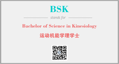 上述内容是“Bachelor of Science in Kinesiology”作为“BSK”的缩写,解释为“运动机能学理学士”时的信息,以及英文缩略词BSK所代表的英文单词,其对应的中文拼音、详细解释以及在英文中的流行度和相关分类、应用领域及应用示例等。