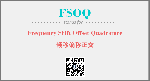 上述内容是“Frequency Shift Offset Quadrature”作为“FSOQ”的缩写,解释为“频移偏移正交”时的信息,以及英文缩略词FSOQ所代表的英文单词,其对应的中文拼音、详细解释以及在英文中的流行度和相关分类、应用领域及应用示例等。
