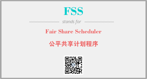 上述内容是“Fair Share Scheduler”作为“FSS”的缩写,解释为“公平共享计划程序”时的信息,以及英文缩略词FSS所代表的英文单词,其对应的中文拼音、详细解释以及在英文中的流行度和相关分类、应用领域及应用示例等。