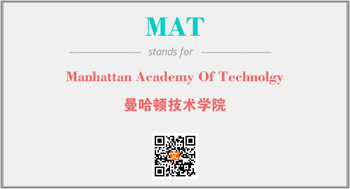 英文缩略词“MAT”经常作为“Manhattan Academy Of Technolgy”的英文缩写来使用,中文表示:“曼哈顿技术学院”。本文将详细介绍英文缩写词MAT所代表英文单词,其对应的中文拼音、详细解释以及在英语中的流行度。此外,还有关于缩略词MAT的分类、应用领域及相关应用示例等。