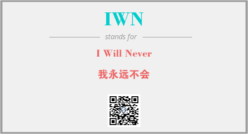 上述内容是“I Will Never”作为“IWN”的缩写,解释为“我永远不会”时的信息,以及英文缩略词IWN所代表的英文单词,其对应的中文拼音、详细解释以及在英文中的流行度和相关分类、应用领域及应用示例等。
