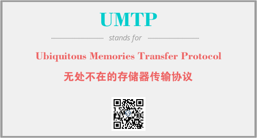 上述内容是“Ubiquitous Memories Transfer Protocol”作为“UMTP”的缩写,解释为“无处不在的存储器传输协议”时的信息,以及英文缩略词UMTP所代表的英文单词,其对应的中文拼音、详细解释以及在英文中的流行度和相关分类、应用领域及应用示例等。