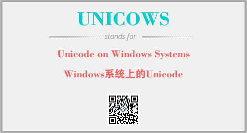 英文缩略词“UNICOWS”经常作为“Unicode on Windows Systems”的英文缩写来使用,中文表示:“Windows系统上的Unicode”。本文将详细介绍英文缩写词UNICOWS所代表英文单词,其对应的中文拼音、详细解释以及在英语中的流行度。此外,还有关于缩略词UNICOWS的分类、应用领域及相关应用示例等。