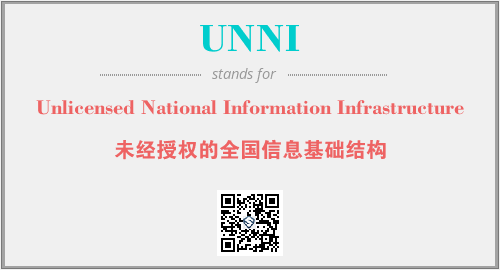 英文缩略词“UNNI”经常作为“Unlicensed National Information Infrastructure”的英文缩写来使用,中文表示:“未经授权的全国信息基础结构”。本文将详细介绍英文缩写词UNNI所代表英文单词,其对应的中文拼音、详细解释以及在英语中的流行度。此外,还有关于缩略词UNNI的分类、应用领域及相关应用示例等。
