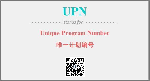 英文缩略词“UPN”经常作为“Unique Program Number”的英文缩写来使用,中文表示:“唯一计划编号”。本文将详细介绍英文缩写词UPN所代表英文单词,其对应的中文拼音、详细解释以及在英语中的流行度。此外,还有关于缩略词UPN的分类、应用领域及相关应用示例等。