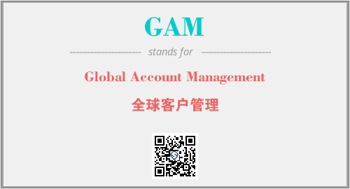 英文缩略词“GAM”经常作为“Global Account Management”的英文缩写来使用,中文表示:“全球客户管理”。本文将详细介绍英文缩写词GAM所代表英文单词,其对应的中文拼音、详细解释以及在英语中的流行度。此外,还有关于缩略词GAM的分类、应用领域及相关应用示例等。