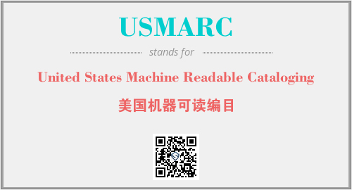 英文缩略词“USMARC”经常作为“United States Machine Readable Cataloging”的英文缩写来使用,中文表示:“美国机器可读编目”。本文将详细介绍英文缩写词USMARC所代表英文单词,其对应的中文拼音、详细解释以及在英语中的流行度。此外,还有关于缩略词USMARC的分类、应用领域及相关应用示例等。