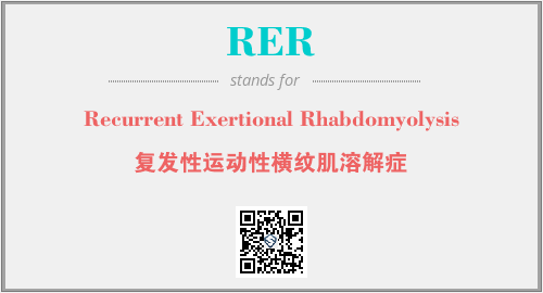 英文缩略词“RER”经常作为“Recurrent Exertional Rhabdomyolysis”的英文缩写来使用,中文表示:“复发性运动性横纹肌溶解症”。本文将详细介绍英文缩写词RER所代表英文单词,其对应的中文拼音、详细解释以及在英语中的流行度。此外,还有关于缩略词RER的分类、应用领域及相关应用示例等。
