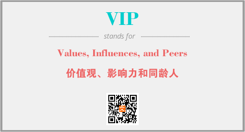 上述内容是“Values, Influences, and Peers”作为“VIP”的缩写,解释为“价值观、影响力和同龄人”时的信息,以及英文缩略词VIP所代表的英文单词,其对应的中文拼音、详细解释以及在英文中的流行度和相关分类、应用领域及应用示例等。