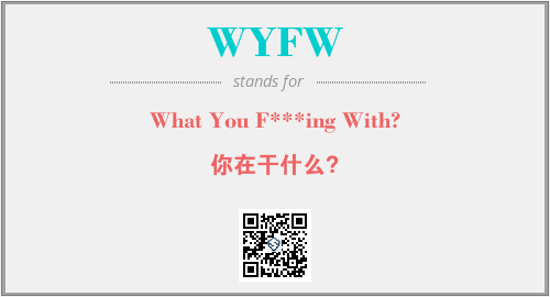 以上为What You F***ing With?英文缩略词WYFW的中文解释,以及该英文缩写在英语的流行度、分类和应用领域方面的信息。
