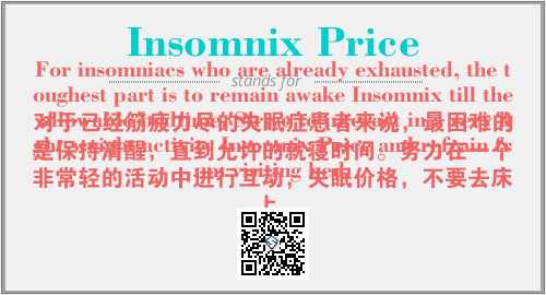 英文缩略词“Insomnix Price”经常作为“For insomniacs who are already exhausted, the toughest part is to remain awake Insomnix till the allowable bedtime. Strive to interact in a very light-weight activity Insomnix Price and refrain from visiting bed.”的英文缩写来使用,中文表示:“对于已经筋疲力尽的失眠症患者来说,最困难的是保持清醒,直到允许的就寝时间。努力在一个非常轻的活动中进行互动,失眠价格,不要去床上。”。本文将详细介绍英文缩写词Insomnix Price所代表英文单词,其对应的中文拼音、详细解释以及在英语中的流行度。此外,还有关于缩略词Insomnix Price的分类、应用领域及相关应用示例等。