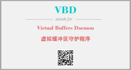 英文缩略词“VBD”经常作为“Virtual Buffers Daemon”的英文缩写来使用,中文表示:“虚拟缓冲区守护程序”。本文将详细介绍英文缩写词VBD所代表英文单词,其对应的中文拼音、详细解释以及在英语中的流行度。此外,还有关于缩略词VBD的分类、应用领域及相关应用示例等。