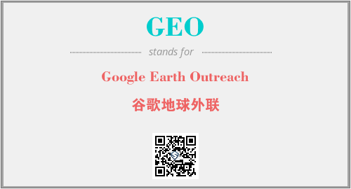 上述内容是“Google Earth Outreach”作为“GEO”的缩写,解释为“谷歌地球外联”时的信息,以及英文缩略词GEO所代表的英文单词,其对应的中文拼音、详细解释以及在英文中的流行度和相关分类、应用领域及应用示例等。