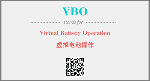 上述内容是“Virtual Battery Operation”作为“VBO”的缩写,解释为“虚拟电池操作”时的信息,以及英文缩略词VBO所代表的英文单词,其对应的中文拼音、详细解释以及在英文中的流行度和相关分类、应用领域及应用示例等。