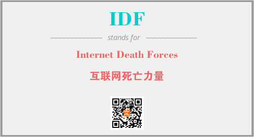 上述内容是“Internet Death Forces”作为“IDF”的缩写,解释为“互联网死亡力量”时的信息,以及英文缩略词IDF所代表的英文单词,其对应的中文拼音、详细解释以及在英文中的流行度和相关分类、应用领域及应用示例等。