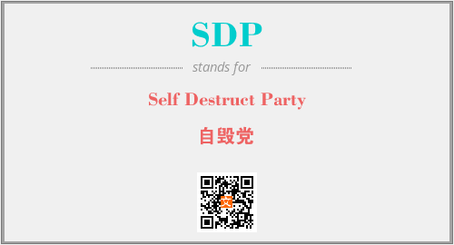 英文缩略词“SDP”经常作为“Self Destruct Party”的英文缩写来使用,中文表示:“自毁党”。本文将详细介绍英文缩写词SDP所代表英文单词,其对应的中文拼音、详细解释以及在英语中的流行度。此外,还有关于缩略词SDP的分类、应用领域及相关应用示例等。