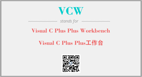英文缩略词“VCW”经常作为“Visual C Plus Plus Workbench”的英文缩写来使用,中文表示:“Visual C Plus Plus工作台”。本文将详细介绍英文缩写词VCW所代表英文单词,其对应的中文拼音、详细解释以及在英语中的流行度。此外,还有关于缩略词VCW的分类、应用领域及相关应用示例等。