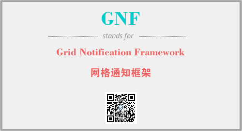 英文缩略词“GNF”经常作为“Grid Notification Framework”的英文缩写来使用,中文表示:“网格通知框架”。本文将详细介绍英文缩写词GNF所代表英文单词,其对应的中文拼音、详细解释以及在英语中的流行度。此外,还有关于缩略词GNF的分类、应用领域及相关应用示例等。