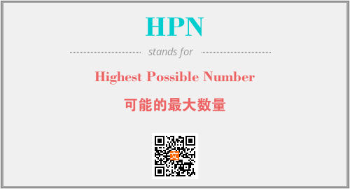 英文缩略词“HPN”经常作为“Highest Possible Number”的英文缩写来使用,中文表示:“可能的最大数量”。本文将详细介绍英文缩写词HPN所代表英文单词,其对应的中文拼音、详细解释以及在英语中的流行度。此外,还有关于缩略词HPN的分类、应用领域及相关应用示例等。