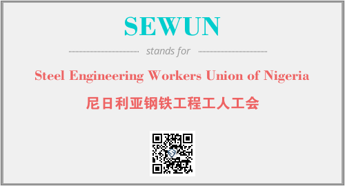 上述内容是“Steel Engineering Workers Union of Nigeria”作为“SEWUN”的缩写,解释为“尼日利亚钢铁工程工人工会”时的信息,以及英文缩略词SEWUN所代表的英文单词,其对应的中文拼音、详细解释以及在英文中的流行度和相关分类、应用领域及应用示例等。