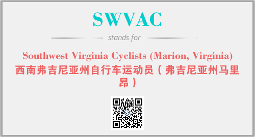 以上为Southwest Virginia Cyclists (Marion, Virginia)英文缩略词SWVAC的中文解释,以及该英文缩写在英语的流行度、分类和应用领域方面的信息。