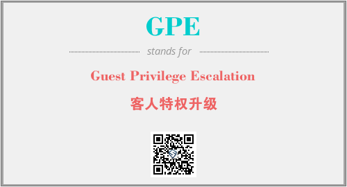 上述内容是“Guest Privilege Escalation”作为“GPE”的缩写,解释为“客人特权升级”时的信息,以及英文缩略词GPE所代表的英文单词,其对应的中文拼音、详细解释以及在英文中的流行度和相关分类、应用领域及应用示例等。