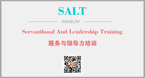 以上为Servanthood And Leadership Training英文缩略词SALT的中文解释,以及该英文缩写在英语的流行度、分类和应用领域方面的信息。