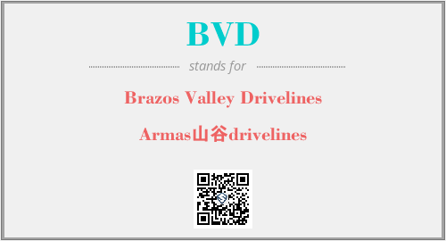 英文缩略词“BVD”经常作为“Brazos Valley Drivelines”的英文缩写来使用,中文表示:“Armas山谷drivelines”。本文将详细介绍英文缩写词BVD所代表英文单词,其对应的中文拼音、详细解释以及在英语中的流行度。此外,还有关于缩略词BVD的分类、应用领域及相关应用示例等。