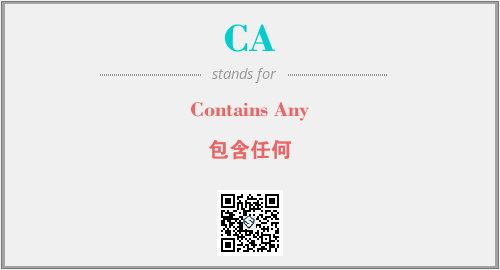 上述内容是“Contains Any”作为“CA”的缩写,解释为“包含任何”时的信息,以及英文缩略词CA所代表的英文单词,其对应的中文拼音、详细解释以及在英文中的流行度和相关分类、应用领域及应用示例等。